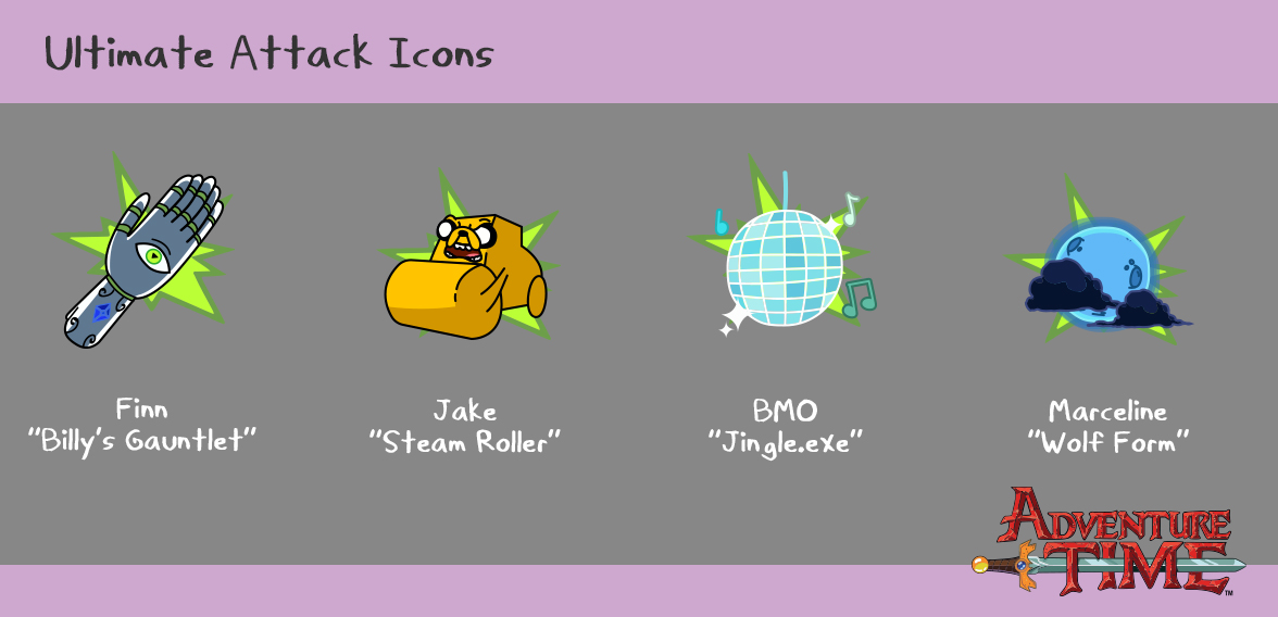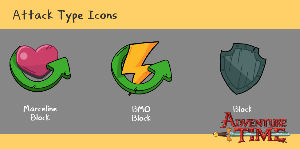 We wanted to give the UI a hand drawn feel, as if Finn had drawn it all in his notebook, but ensure that it still had the same tongue in cheek tone as the show.